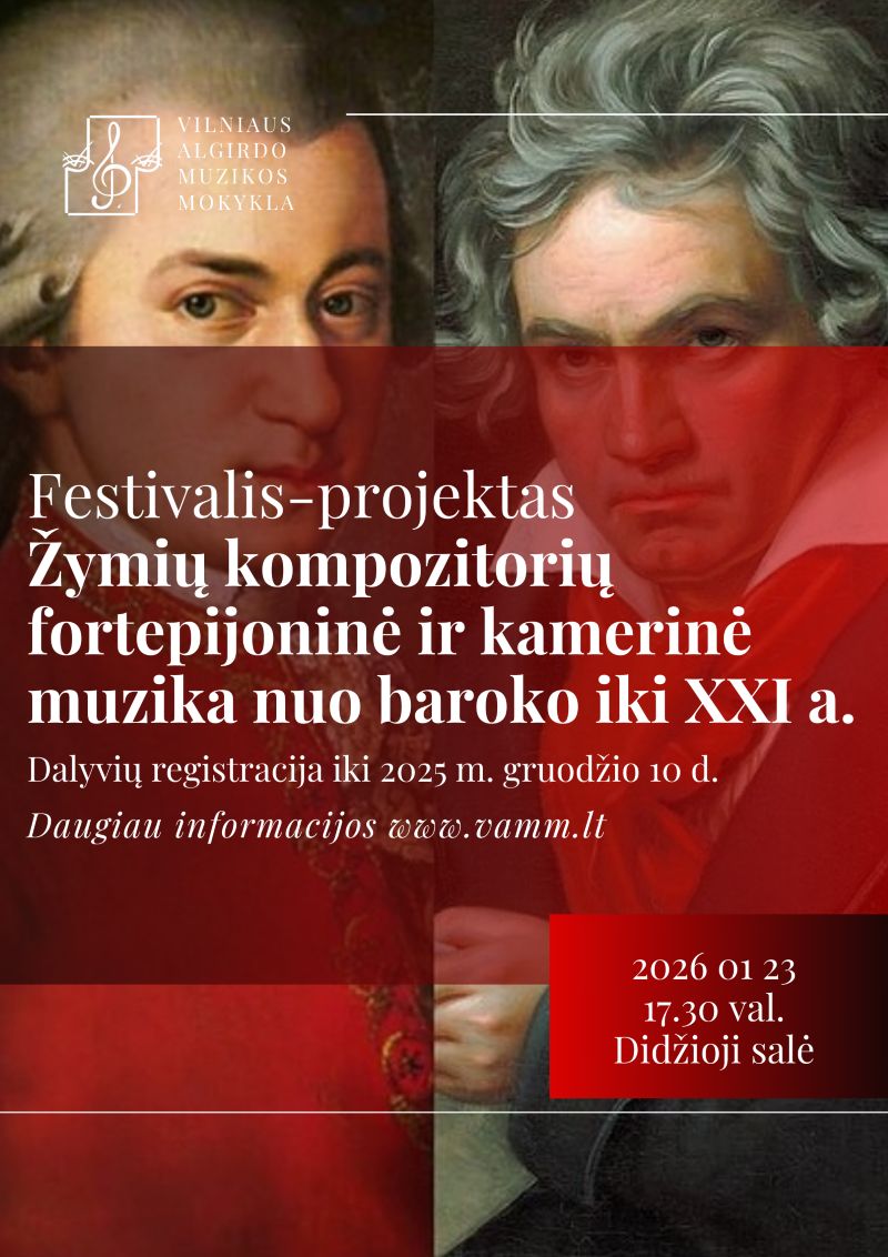 Maloniai kviečiame mūsų mokyklos fortepijono metodinės grupės, chorinio dainavimo fortepijono dalyko mokinius, fortepijoninius ir kamerinius ansamblius dalyvauti festivalyje, kuris vyks 2026 m. sausio 23 d.!