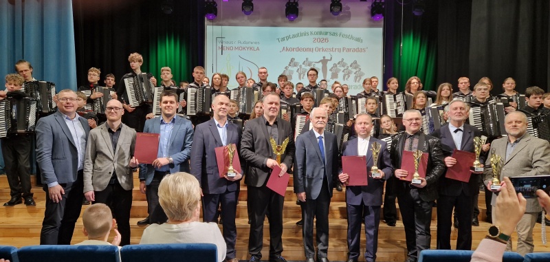 Nuoširdžiai sveikiname mūsų mokyklos akordeonistų orkestrą ir jo vadovą Valdą Umbrasą užėmus pirmąją vietą tarptautiniame konkurse–festivalyje „Akordeonų orkestrų paradas“, kuris vyko 2026 m. kovo 14 d. Rudaminos meno mokykloje. Tai reikšmingas pasiekimas, liudijantis didelį talentą, kruopštų darbą ir meilę muzikai.